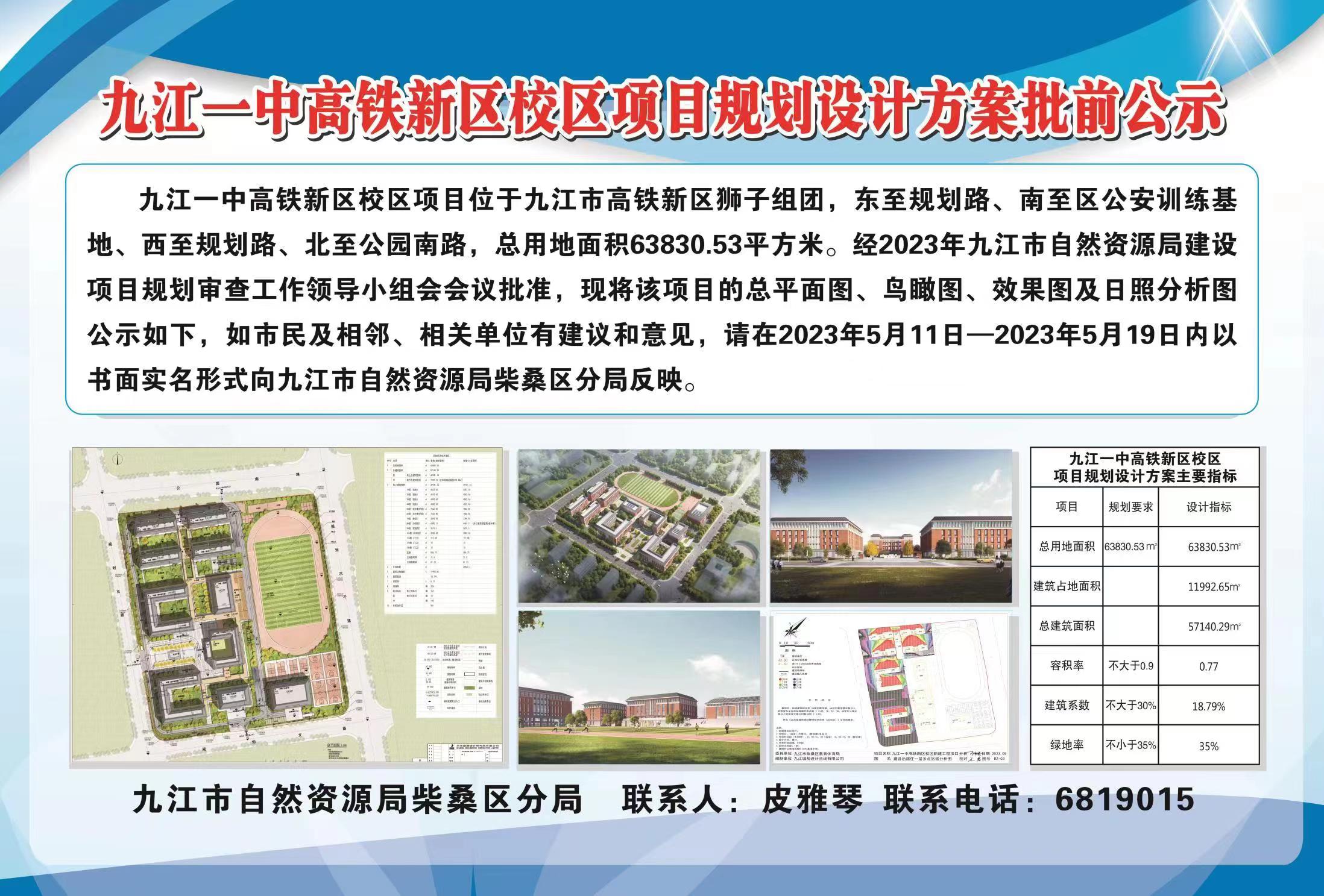 5月11日,從柴桑區(qū)人民政府官網(wǎng)獲悉,九江一中高鐵新區(qū)校區(qū)項(xiàng)目規(guī)劃設(shè)計(jì)方案正在批前公示!